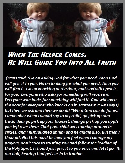 (Jesus said, ‘Go on asking God for what you need. Then God will give it to you. Go on looking for what you need. Then you will find it. Go on knocking at the door, and God will open it for you. Everyone who asks for something will receive it. Everyone who looks for something will find it. God will open the door for everyone who knocks on it. Matthew 7:7-8 Easy>) But then we ask and then we doubt “What God can do for us.” I remember when I would say to my child, go pick up that truck, then go pick up your blanket, then go pick up your apple you left over there. That poor child was running around in circles. and I just laughed at him, and he giggle also. But then I thought. God this must be how you feel when I change my prayers, don’t stick to trusting You and follow the leading of the Holy Spirit. I should just give it to you once and let it go. It’s our dull, hearing that gets us in to trouble.