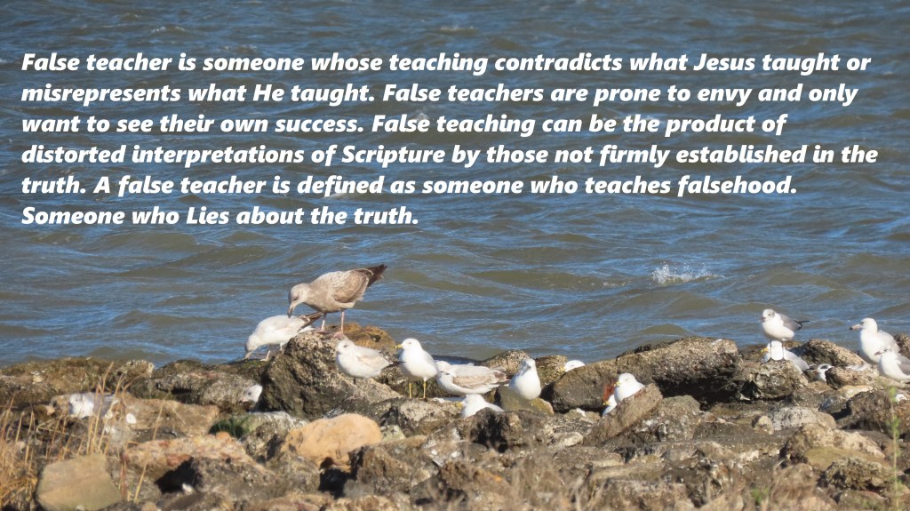 False teacher is someone whose teaching contradicts what Jesus taught or misrepresents what He taught. False teachers are prone to envy and only want to see their own success. False teaching can be the product of distorted interpretations of Scripture by those not firmly established in the truth. A false teacher is defined as someone who teaches falsehood. Someone who Lies about the truth.