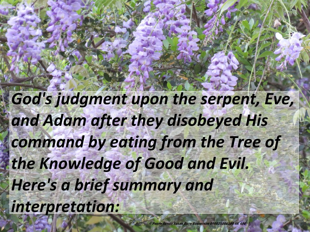 God’s judgment upon the serpent, Eve, and Adam following their disobedience in eating from the Tree of the Knowledge of Good and Evil is a profound narrative that underscores the gravity of their transgression and its consequences.