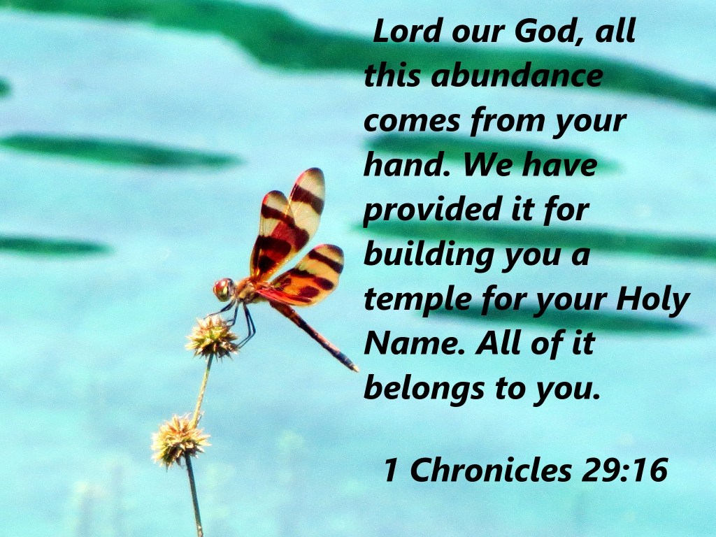 Lord our God, all this abundance comes from your hand. We have provided it for building you a temple for your Holy Name. All of it belongs to you.