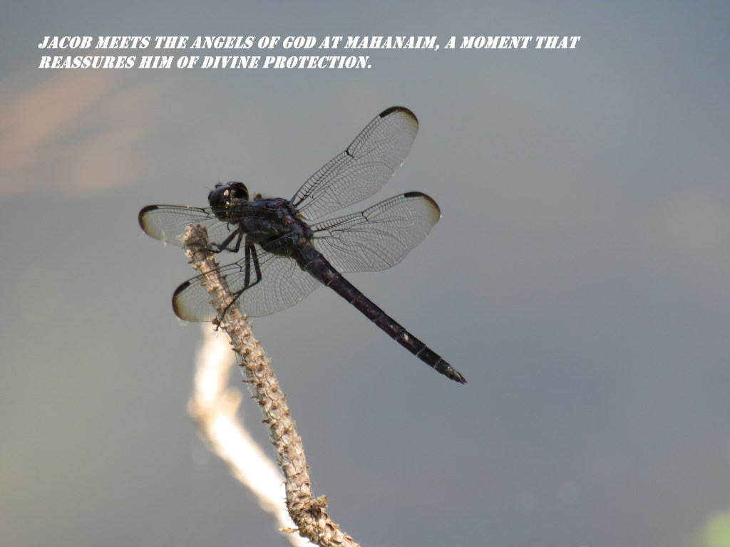 Jacob meets the angels of God at Mahanaim, a moment that reassures him of divine protection.