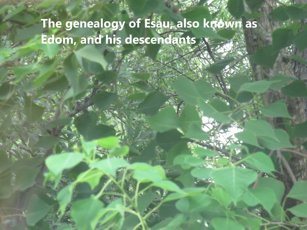 The genealogy of Esau, also known as Edom, and his descendants. Lists Esau’s wives and children, and describes his move to Mount Seir.