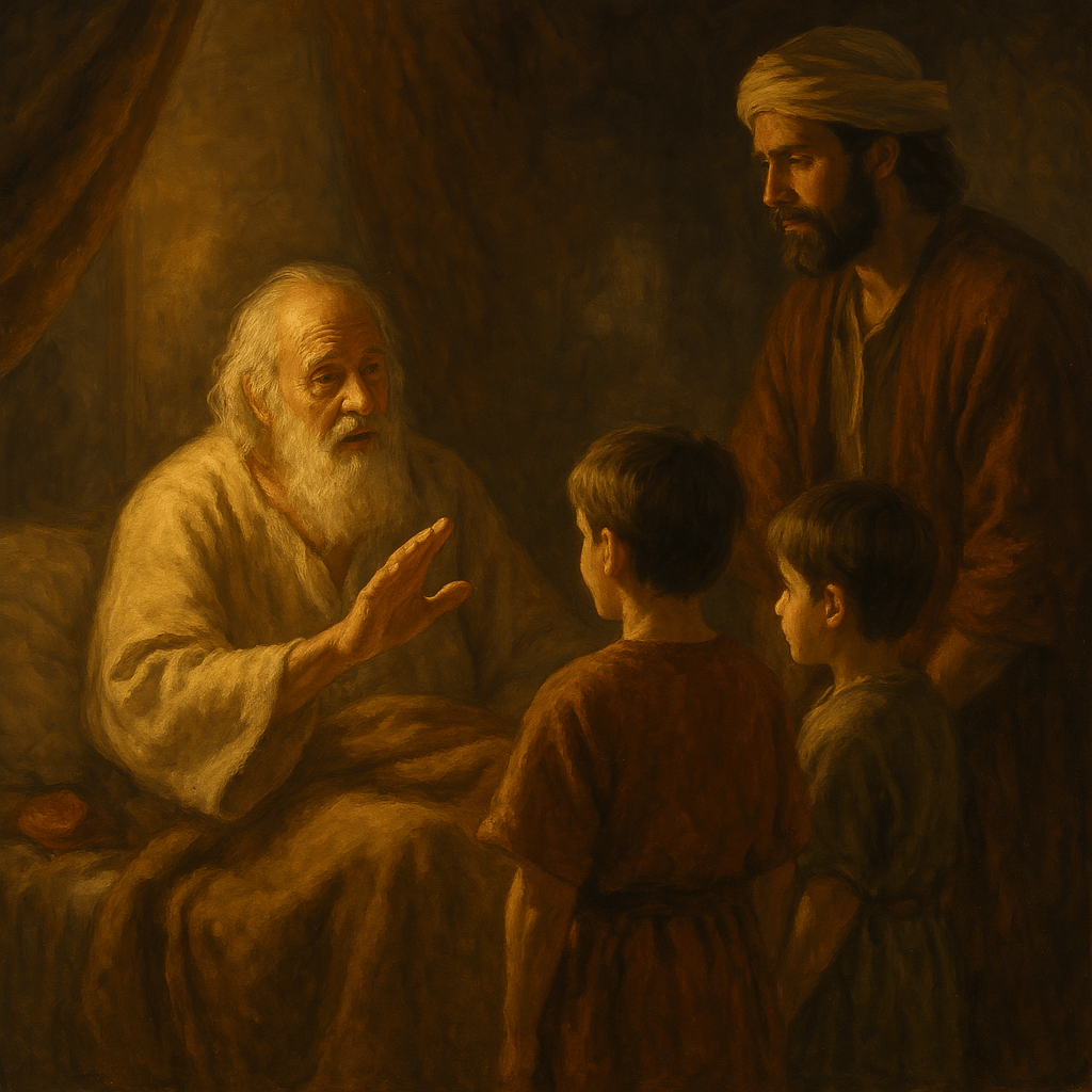 A sacred moment between generations shaped by promise, sorrow, and divine tenderness.
