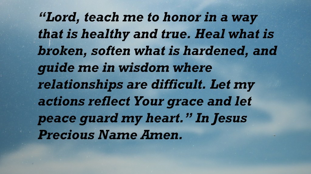 “Lord, teach me to honor in a way that is healthy and true. Heal what is broken, soften what is hardened, and guide me in wisdom where relationships are difficult. Let my actions reflect Your grace and let peace guard my heart.” In Jesus Precious Name Amen.