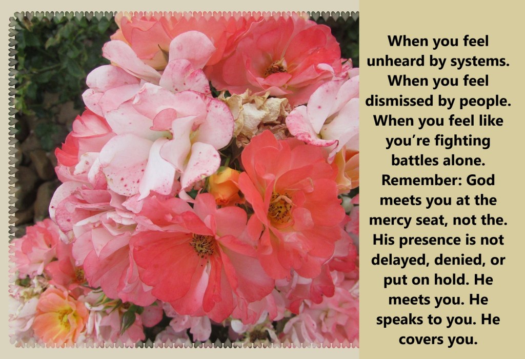 When you feel unheard by systems. When you feel dismissed by people. When you feel like you’re fighting battles alone. Remember: God meets you at the mercy seat, not the. His presence is not delayed, denied, or put on hold. He meets you. He speaks to you. He covers you.