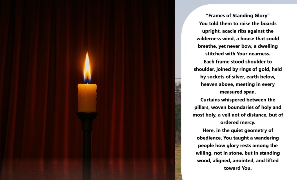 Here, in the quiet geometry of obedience, You taught a wandering people how glory rests among the willing, not in stone, but in standing wood, aligned, anointed, and lifted toward You.