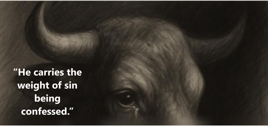 It reads in Exodus 29:10–18 Easy: “Then bring the bull to that place at the front of the Meeting Tent. Aaron and his sons must put their hands on the bull’s head. Then kill the bull there in the Lord’s presence at the entrance to the Meeting Tent. Then take some of the bull’s blood and go to the altar. Use your finger to put some blood on the horns of the altar. Pour out all the blood that is left at the bottom of the altar. Then take all the fat from inside the bull, the fatty part of the liver, both kidneys, and the fat around them. Burn this fat on the altar. Then take the bull’s meat, his skin, and his other parts and go outside your camp and burn them. This bull is an offering to take away the sins of the priests. “Then tell Aaron and his sons to put their hands on the head of one of the rams. Kill that ram and save the blood. Throw the blood against the altar on all four sides. Then cut the ram into several pieces. Wash all the parts from inside the ram and the legs. Put these things with the head and the other pieces of the ram. Then burn everything on the altar. It is a burnt offering to the Lord. It is a sweet-smelling gift to the Lord.
